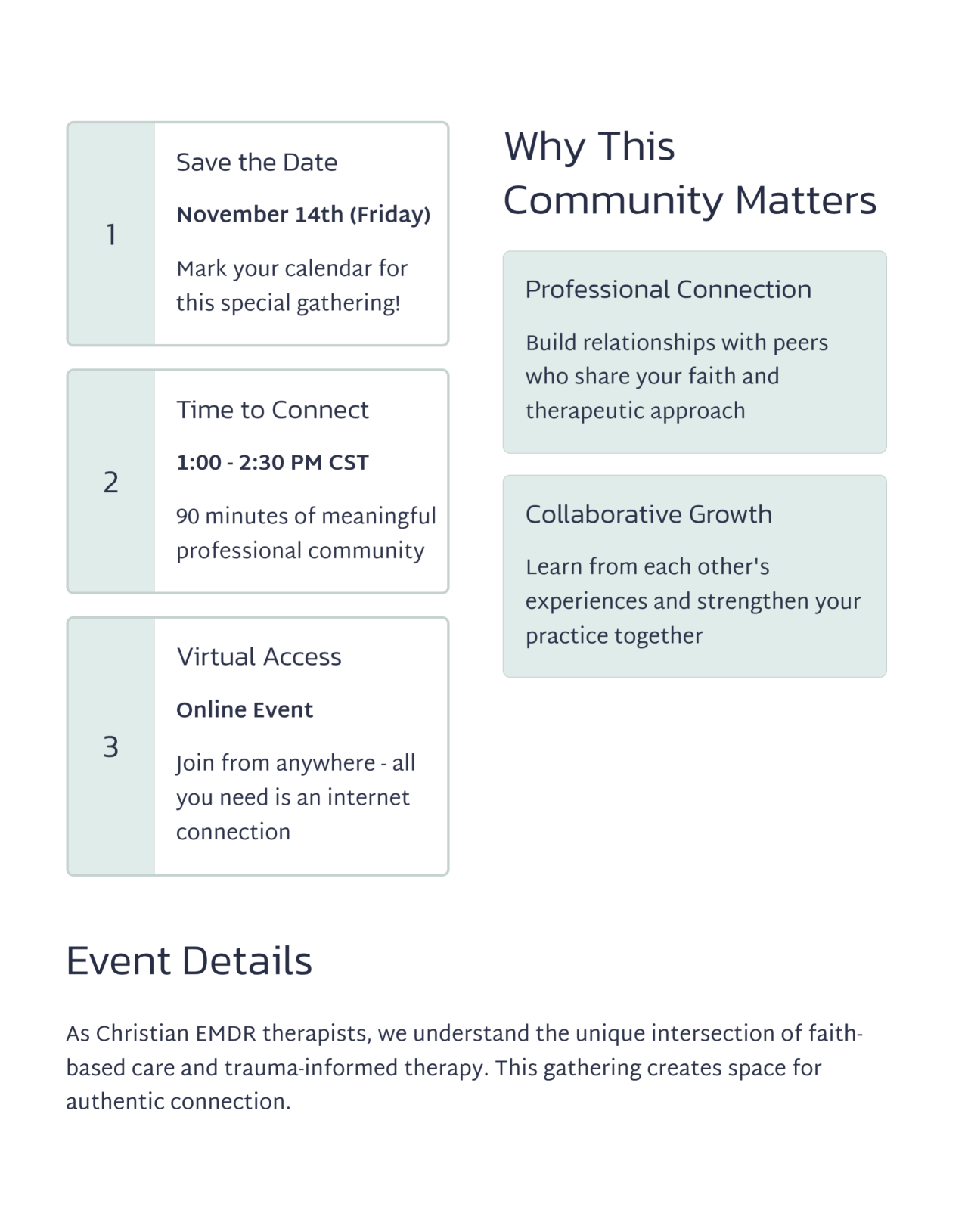 a grassroots effort to build meaningful community among Christian EMDR practitioners.